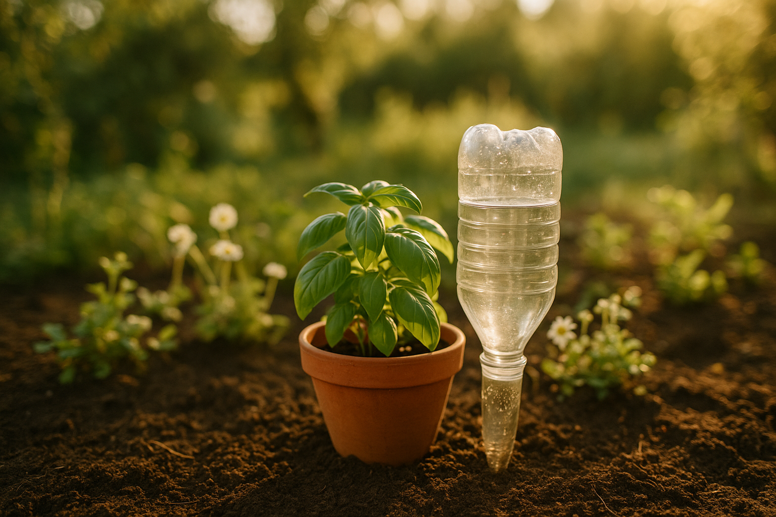 - Bouteille percée enterrée : ultra simple, très efficace pour une plante ou un grand pot.