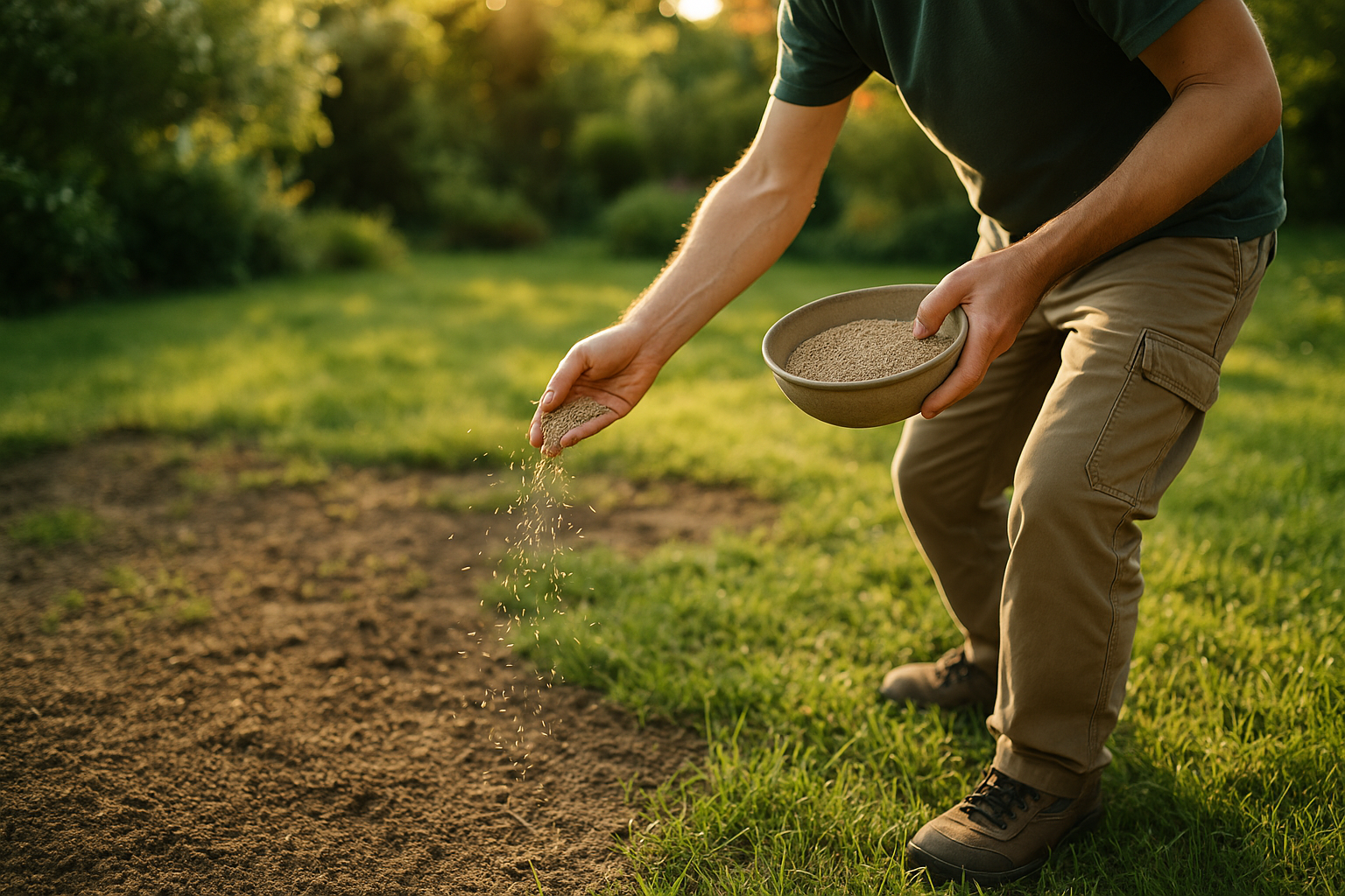 - Sème un mélange de regarnissage (ray-grass pour levée rapide + fétuques pour la tenue).